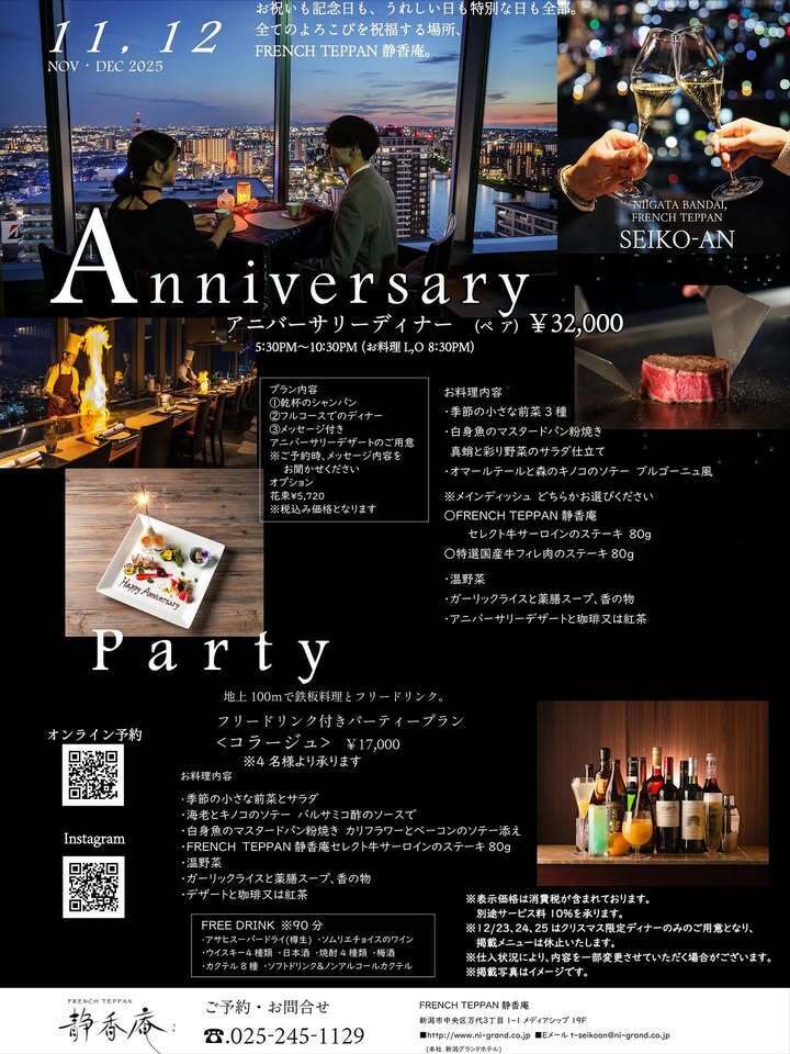 #FRENCHTEPPAN静香庵#静香庵#鉄板焼き#新潟#新潟ディナー#新潟ランチ#夜景#夕陽#夕焼け#記念日ディナー#クリスマスディナー#クリスマス#万代#niigata#niigatagram#niigatapic_night#niigatapic_sky