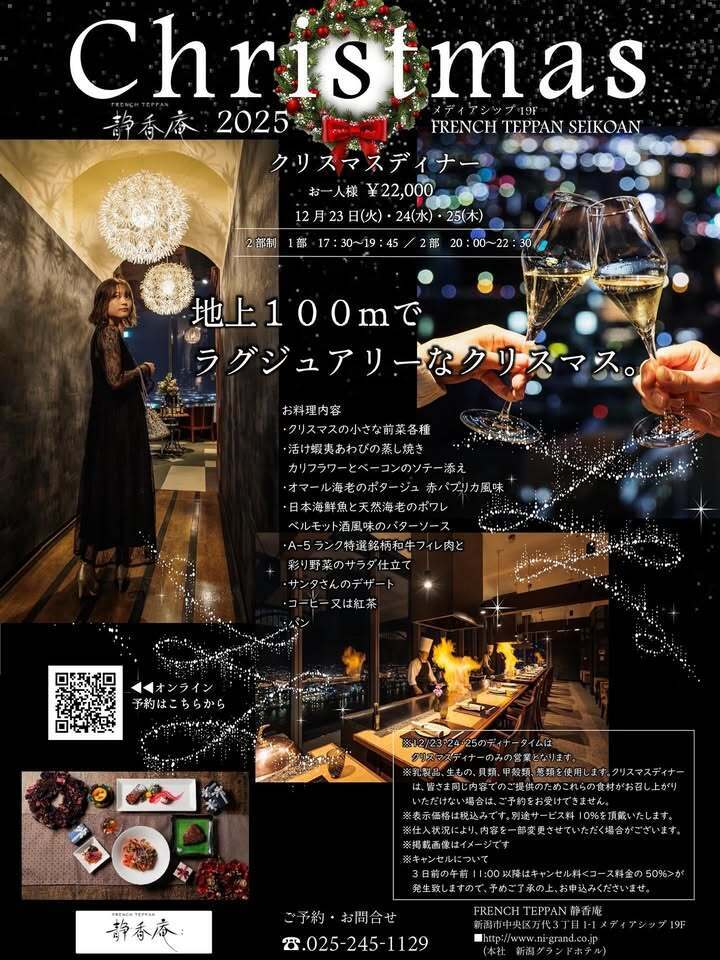 FRENCH TEPPAN静香庵では、12/23、24、25日の3日間限定で、クリスマスディナーを開催いたします!